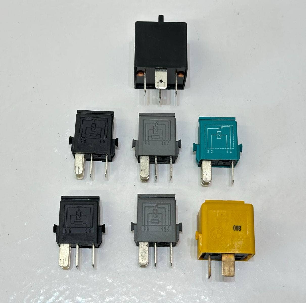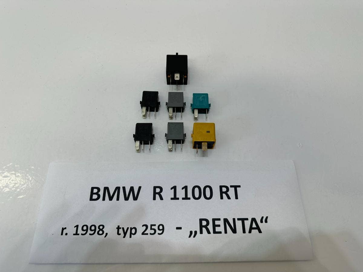 Cena je za minirelé (černé + šedé). Relé na benzínovou pumpu (černéí velké) je za 450, Kč. Díl pochází z motocyklu BMW R 1100 RT. r. 1998. Při použití na jíný model ověřte před objednáním kompatibilitu. Ilustrační foto v popisku. Žluté relé (klema) je za 150, Kč.