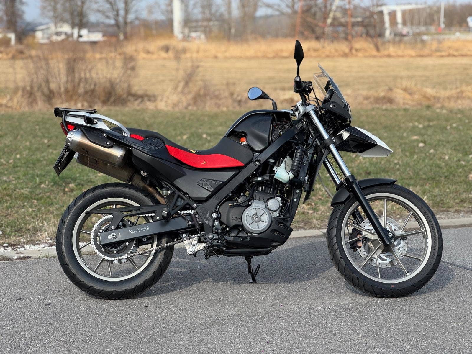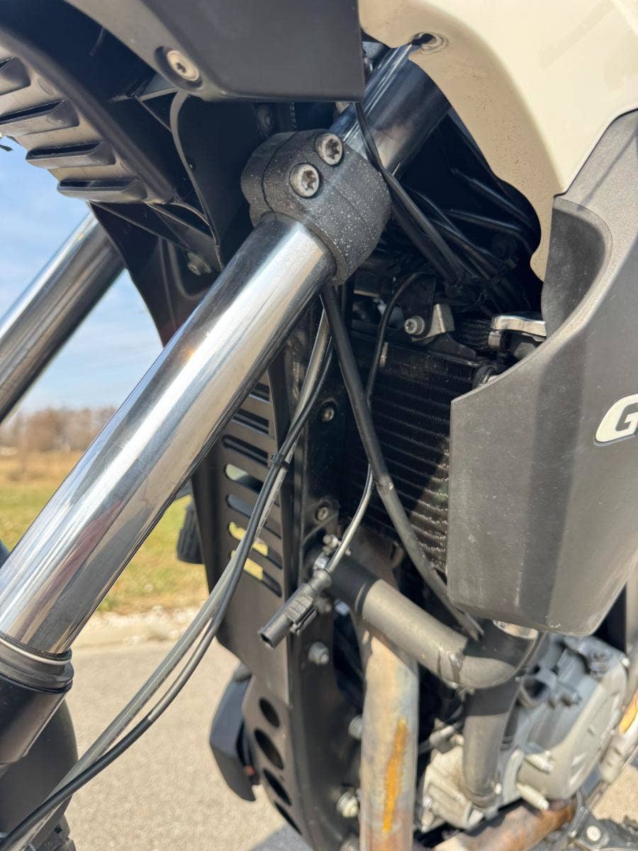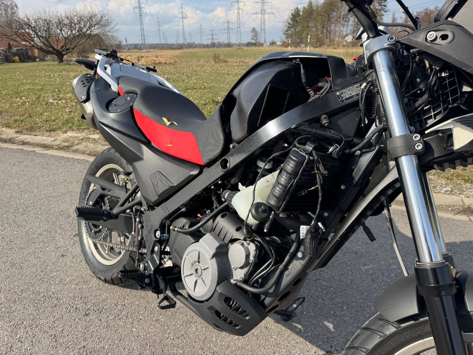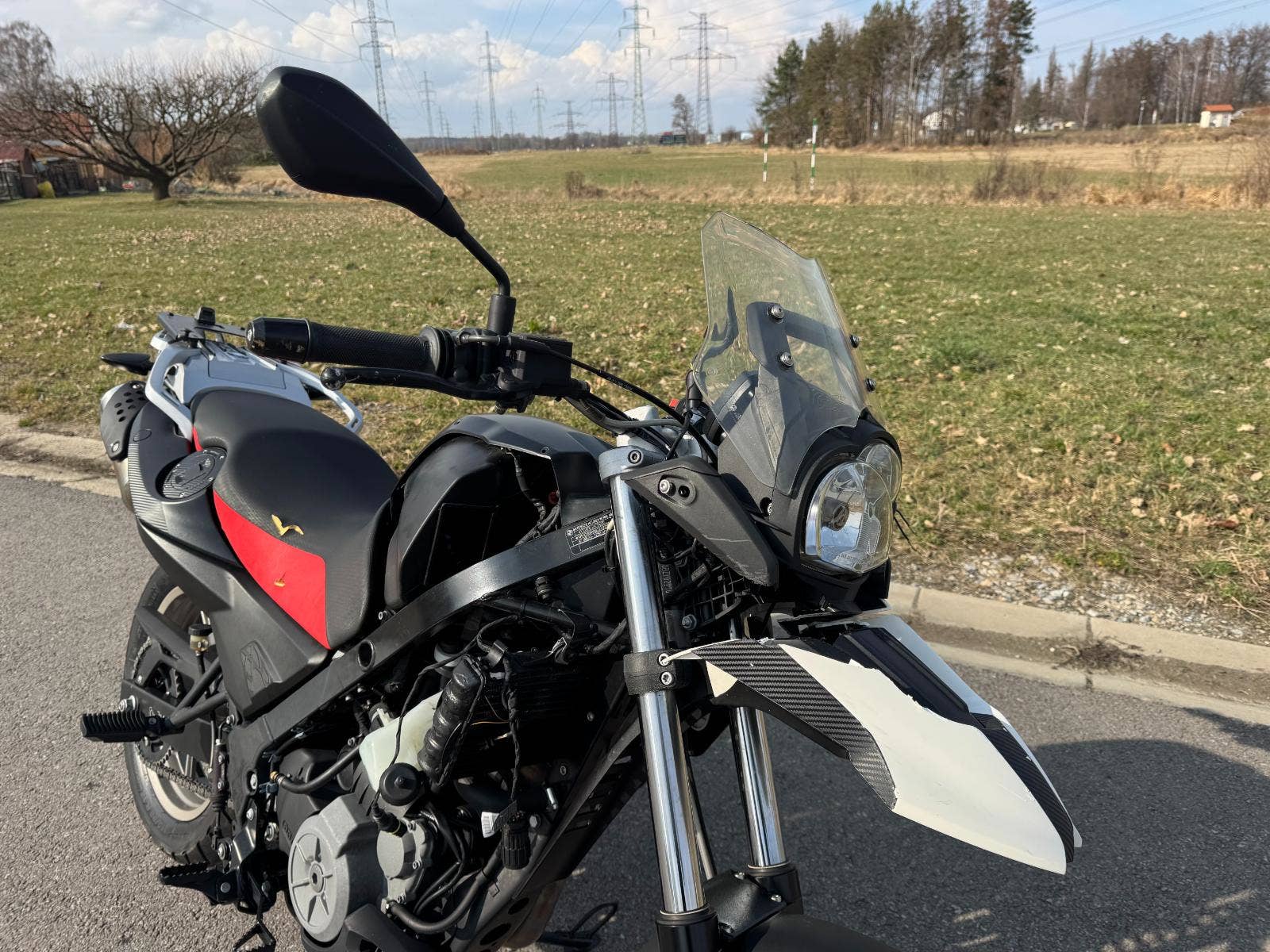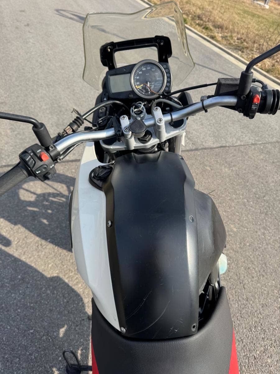 Havarovaný motocykl, dovezený v roce 2025 z Itálie. Následně (9/2025), registrován v ČR a cca po měsíci havarován. Tlumiče, kolo a rám v pořádku. Poškozené plasty, blatník (zobák), lešení, blikače, potah sedačky, airbox, ohnutá řídítka atd viz. foto. Stav tachometru cca 10.000 km, ale údajně byly budíky v Itálii vyměněny kvůli závadě a motocykl má najeto cca 40.000 km. Motocykl byl v lednu 2026 odvezen do autorizovaného servisu BMW, kde byl rozebrán kvůli nacenění opravy. Nyní částečně složen kvůli představě o rozsahu havárie. Vypuštěná chladící kapalina, nezapojena elektrika, chybí baterie. Dle vyjádření majitele motor, převodovka i spojka byly v pořádku a nejsou ani předmětem výčtu dílů potřebných k opravě. V současné době je registrační značka uložena do Depozitu.
